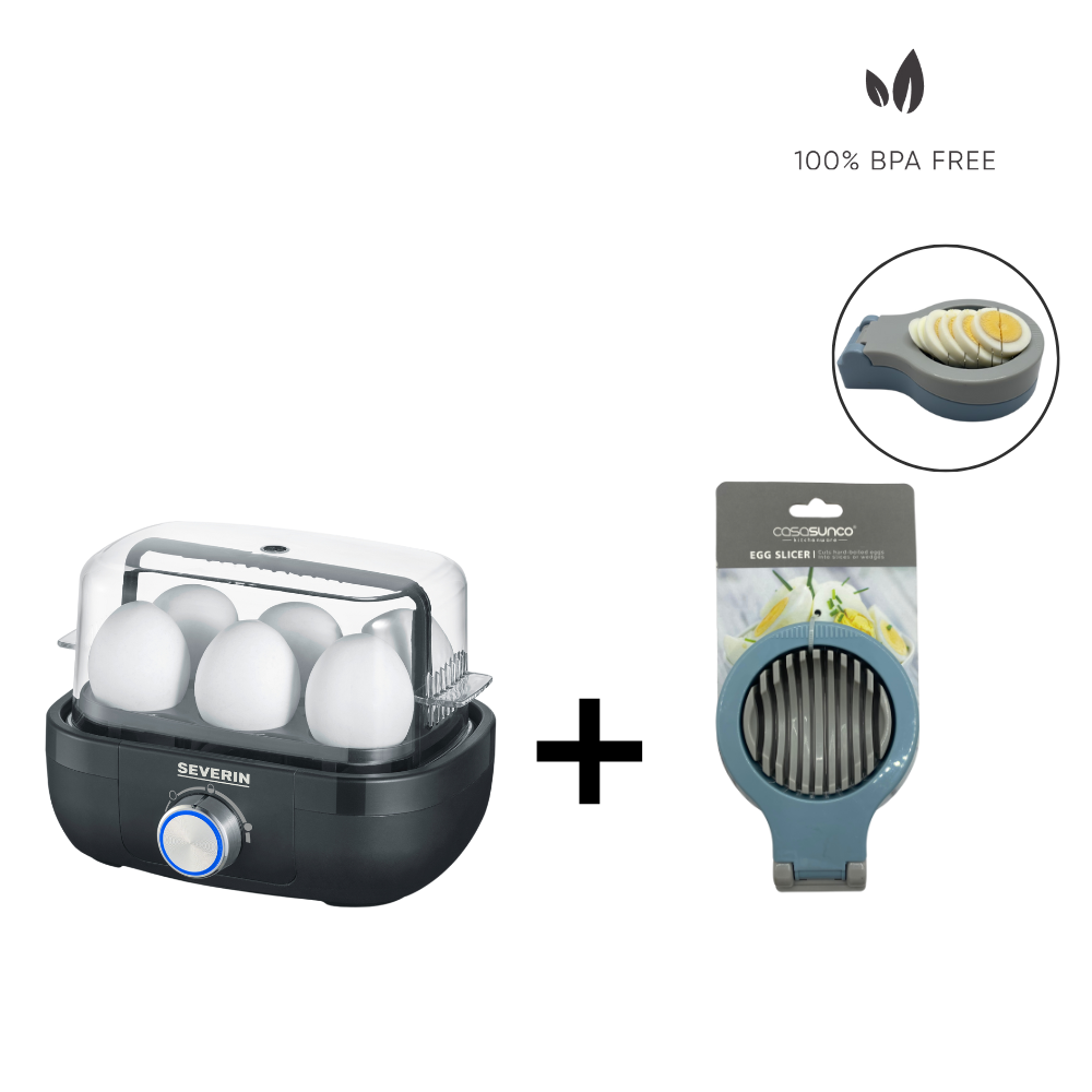 Hervidor de huevos negro con perilla + Cortador de huevos multiusos