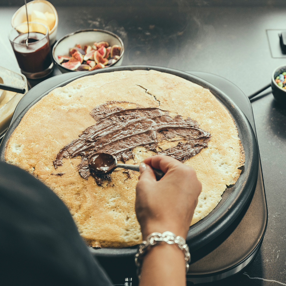 Con nuestra Crepera Premium podrás hacer los mejores, deliciosos e increíbles crepes con un diámetro de 38 cm, tu cómplice perfecto para cualquier momento. Su placa de grill extraíble con revestimiento antiadherente lo hace multifuncional, también puedes preparar huevos fritos, carnes, tortillas y otros alimentos.