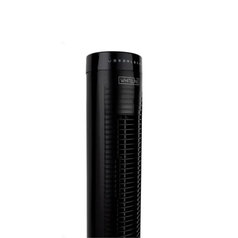 Ventilador de Torre Whiteline Silencioso 3 Velocidades 45 Watts Ventilador que cuenta con una gran capacidad de oscilación de 70° ,3 velocidades, cuenta con mando a distancia ,de igual manera es ligero y silencioso tiene un temporizador de aproximadamente 7.5 horas, control remoto, asa de transporte y una configuración de 3 modos. Tiene motor de cobre con una potencia de 45w y 220v.