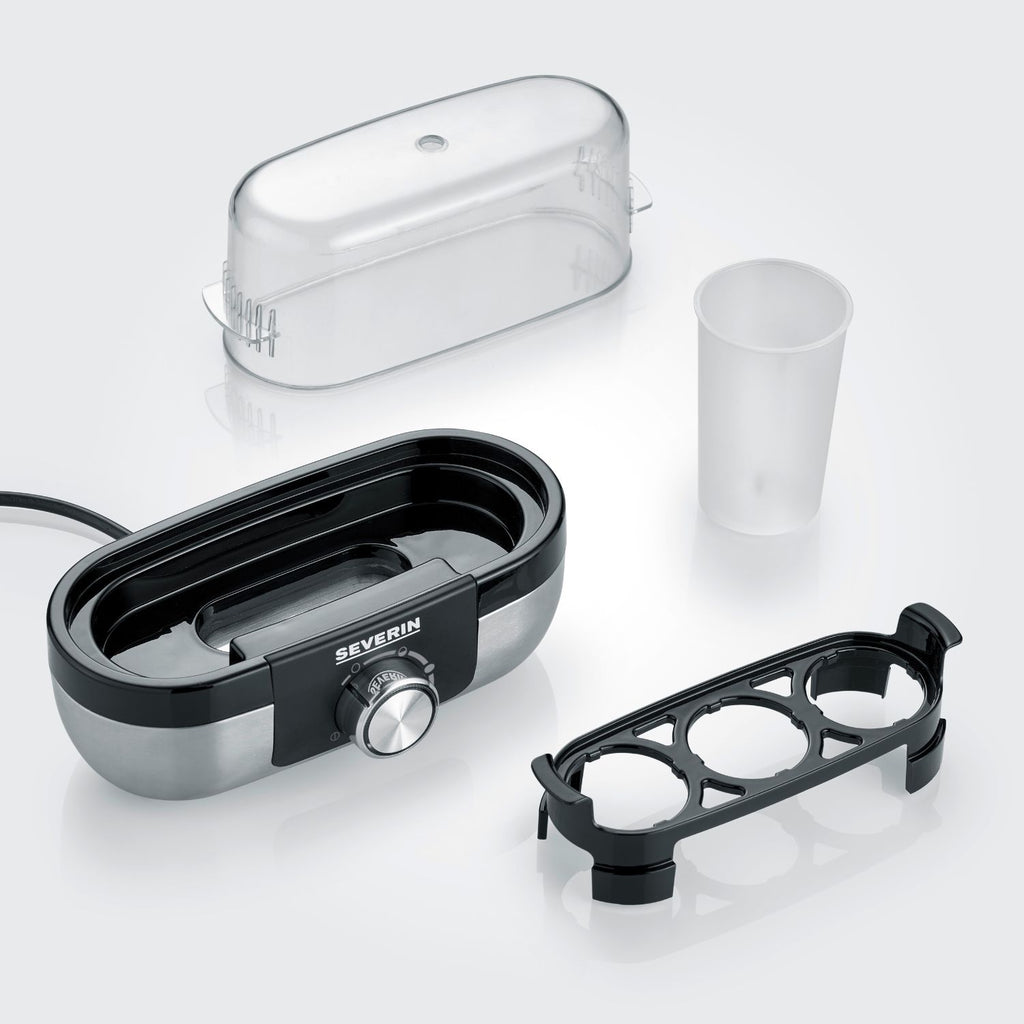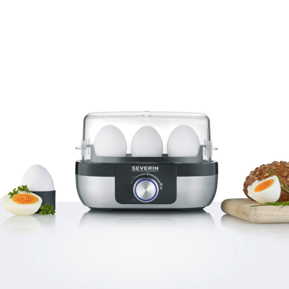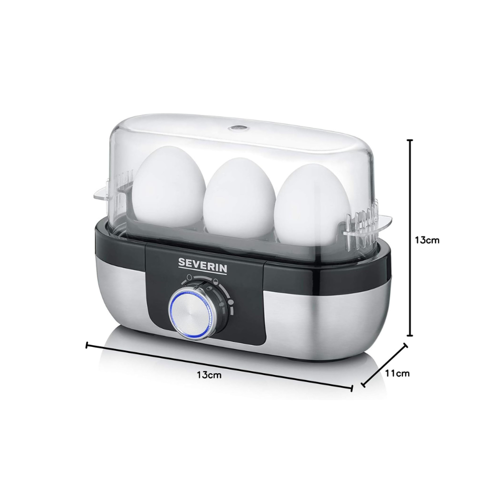 - Diseño de calidad en acero inoxidable para hasta 3 huevos (S-XL)